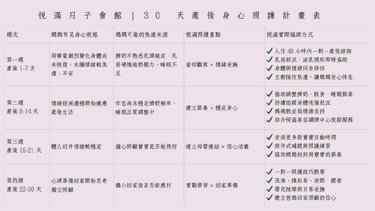 悦滿 30 天產後身心照護計畫